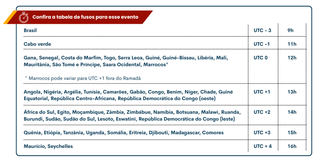 Em função dos diferentes fusos horários, o evento ocorrerá das 8h às 12h (horário do Brasil), com tradução simultânea português-inglês.